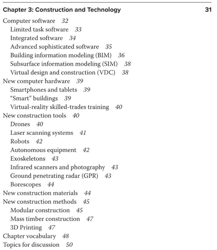 In interesting fact #3, the AI has over-extrapolated from Chapter 3 of the textbook (“Construction and Technology”), which indeed covers futuristic-sounding technology that is making its way onto construction jobsites, but with more nuance than one might expect from the AI summary. Similar exaggeration about sci-fi construction also made its way into the audio and video that AI generated.